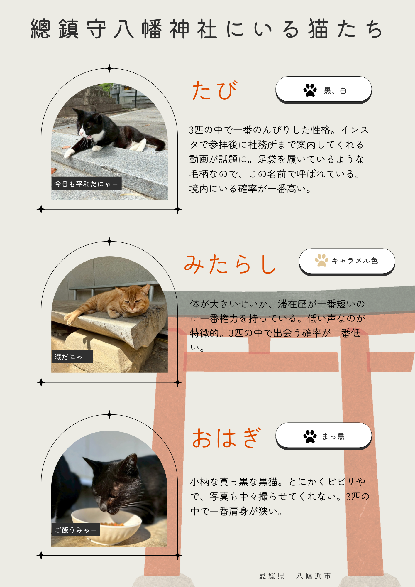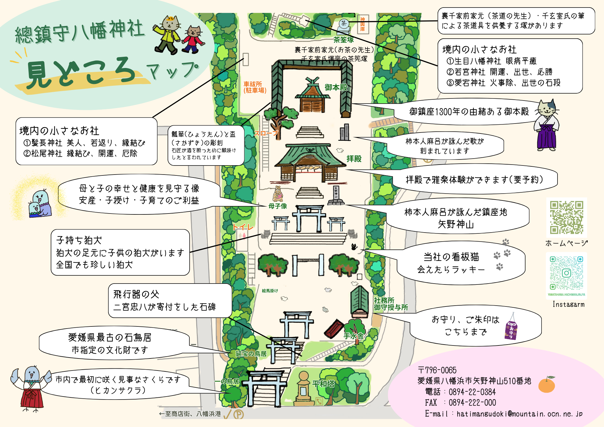 八幡神社は、地名「八幡浜」の由来と伝えられ、養老元年(717年)に創建されました。全国の八幡神社の中でも四番目に古いとされ、ご鎮座より1300年あまり、地域と共に歩んでまいりました。これからも「八幡浜」の地を見守り続ける当社へ、ぜひお参りください。